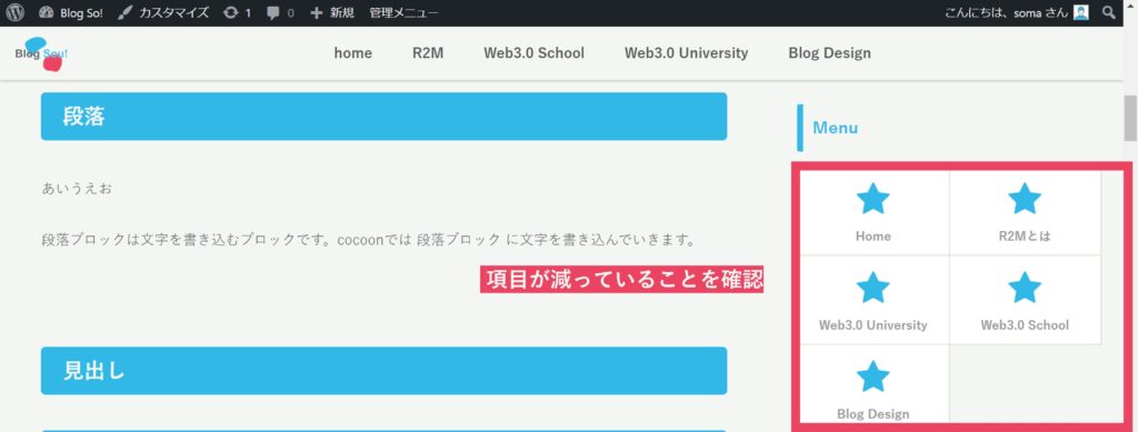 ブログに飛んでサイドバーのメニューを確認してみましょう!項目が減っていることがわかります。