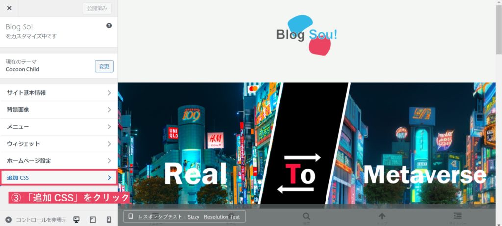 写真の部分に以下のプログラムを打ち込む → 「公開」で変更を保存。