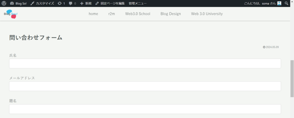 問い合わせフォームの確認