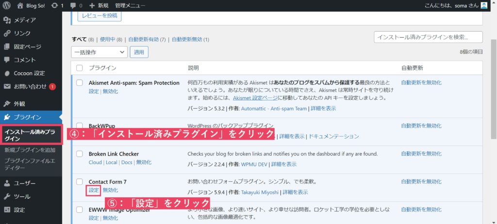 「インストール済みプラグイン」→「設定」