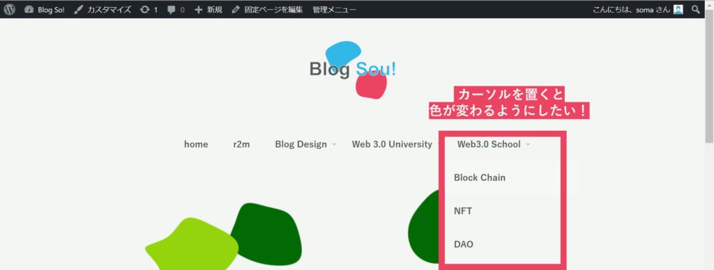 メニューにカーソルを乗せると背景が変わっていることが確認できます。