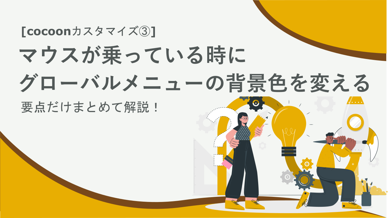 僕のグローバルメニューは以下の写真のようでした。でも、何か味気ないです。そこで、このメニューの上にカーソルを持ってくると、背景色が変わるようにカスタマイズしようと思います。