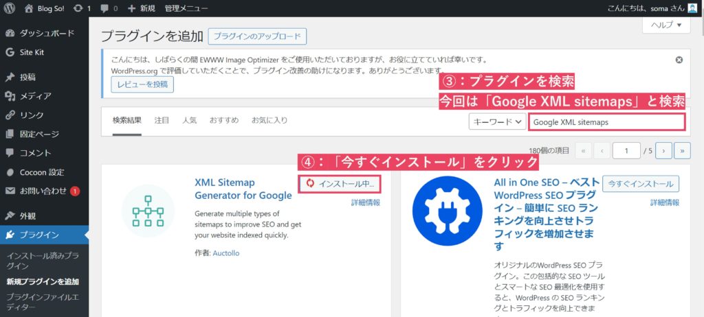 ブログを作成していたら、「Google XML sitemaps」というプラグインを導入する必要が出てきました。これを機に、プラグインの導入の仕方を伝えようと思います。