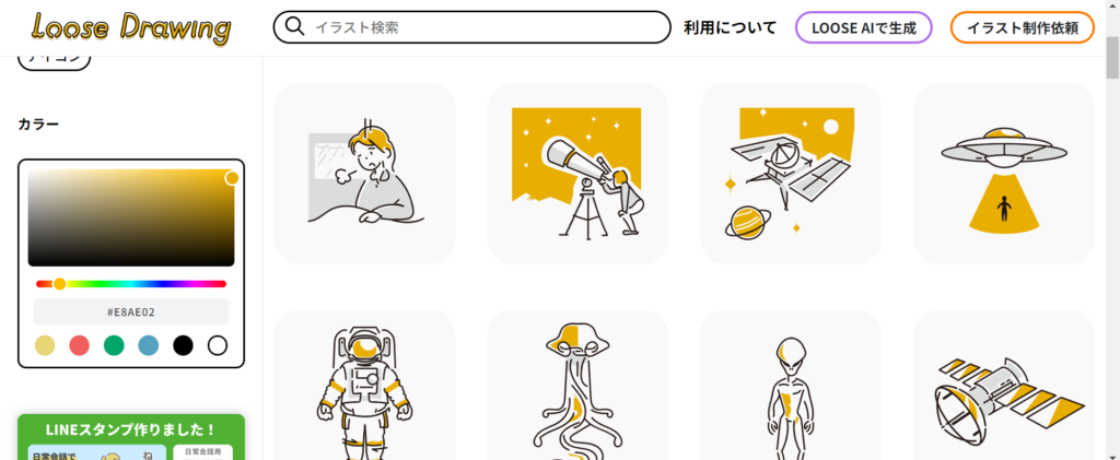 ちなみに、このサイトも左側の「COLOR」というエリアで、色を変えることができます。イラストの色を統一すると、ブログの一体感がさらに増しますよ!
