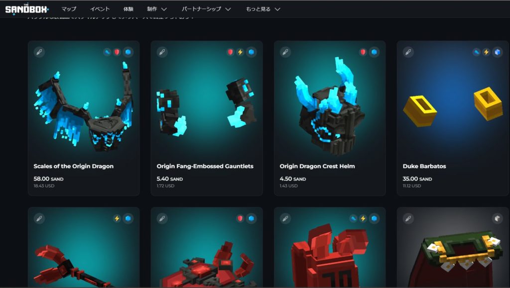 SANDを使えば、ゲーム (メタバース) 内のイベントに参加したり、土地を購入したり、アイテムを購入することができます。