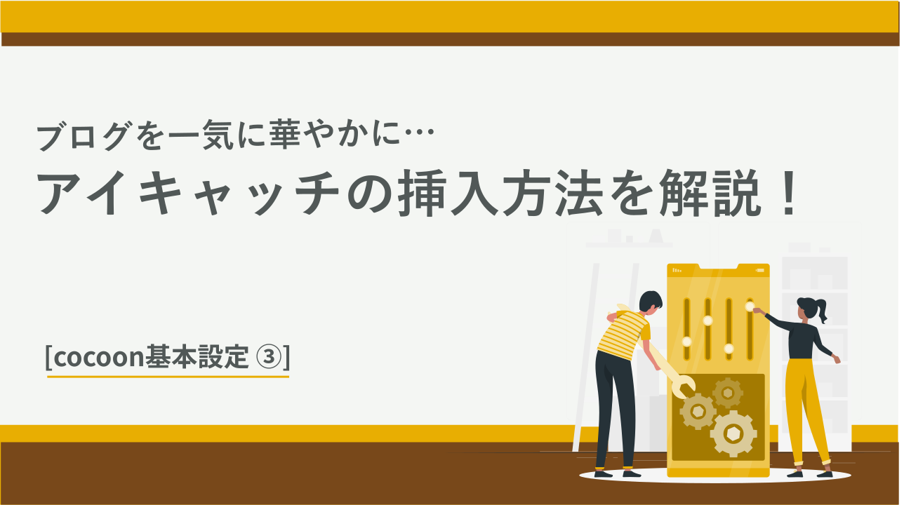 アイキャッチは、ブログの投稿に設定される、ユーザーの目を惹くための画像です。これを設定すると殺風景なブログも、グッと華やかになります! ということで今回はアイキャッチの設定方法を説明します。